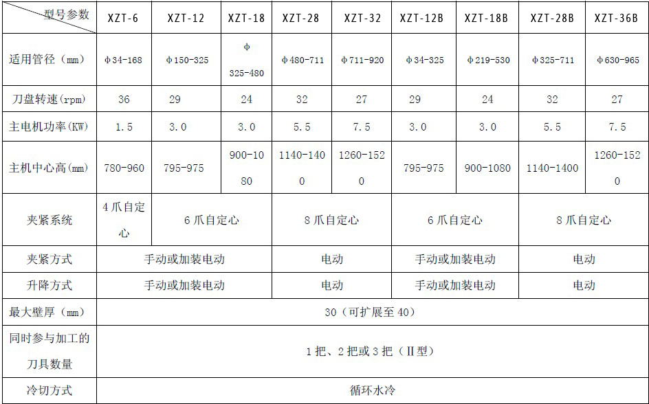 單次進(jìn)刀完成切斷+單道坡口;Ⅱ型切管機(jī)采用雙邊多爪自定心夾緊,單次進(jìn)刀完成切斷+兩道坡口。